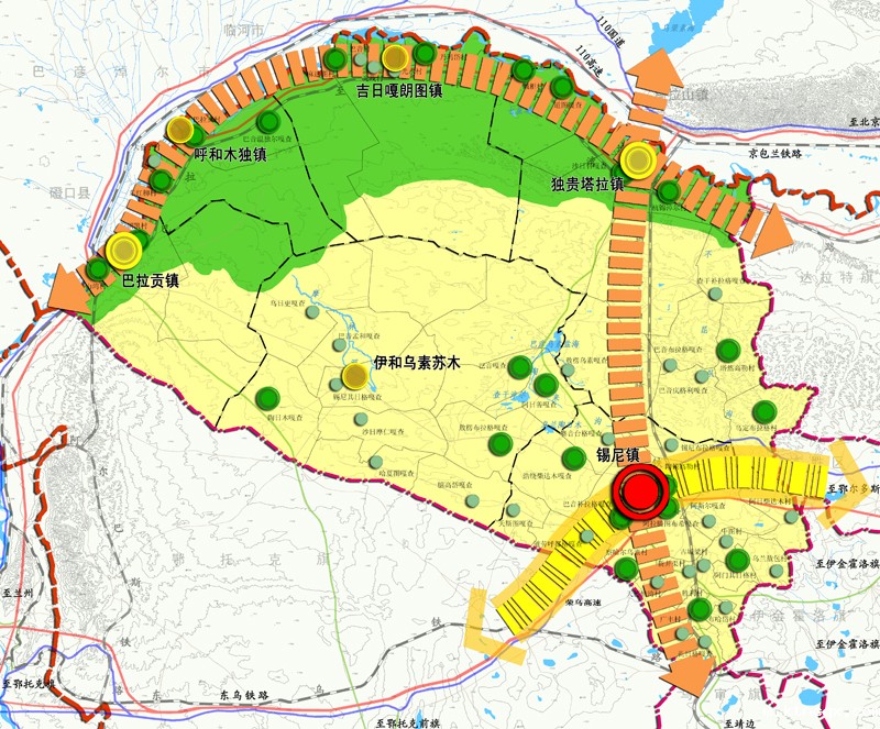 杭锦旗是内蒙古自治区的旗域村镇体系规划和村庄整治规划工作的自治区级试点旗县。为适应新形势下城镇发展的需要,统筹城乡规划建设,改善农民居住条件,改变农村面貌,正确处理好新农村建设与工业化、城镇化快速发展之间的关系,合理安排建设时序,本规划重点深化五个方面的研究。