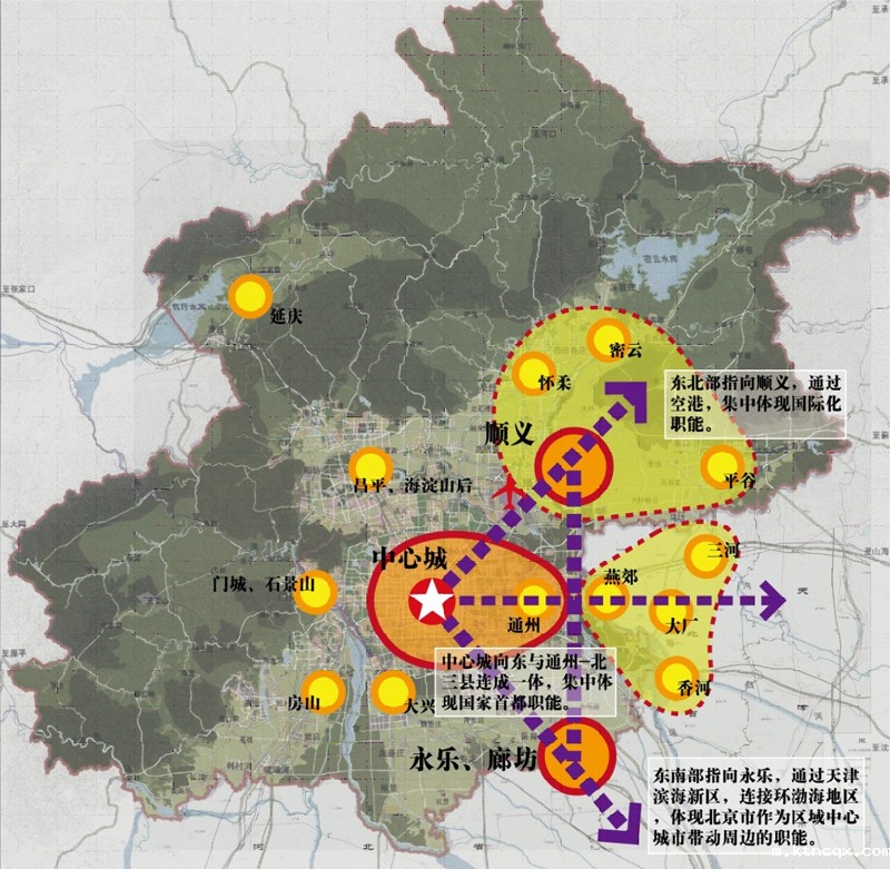 尽管有永乐和廊坊组团的三极并立,但是顺义特殊的地位和区位决定了它在北京东北部区域中的优先发展动力。这种区域的带动功能一定程度上决定了顺义为核心的东北部组团在北京发展世界城市下的区域地位。