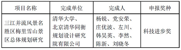 我院参与完成的“三江并流风景名胜区梅里雪山景区总体规划研究”项目拟通过住建部推荐申报2014年度国家科技进步奖,根据国家科技奖励工作办公室和住建部要求进行公示。