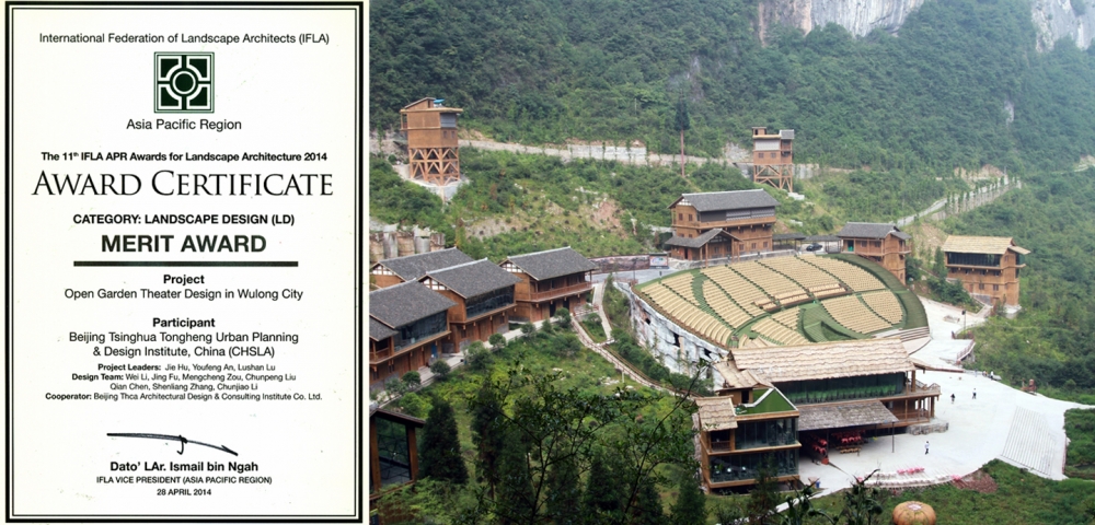 2014年4月,我院风景园林研究中心完成的“天津静海新区团泊新城景观概念性规划设计”和“印象武隆项目景观设计”分别荣获第11届国际风景园林师联合会亚太地区(IFLA APR)风景园林规划类荣誉奖和风景园林设计类荣誉奖。迄今我院已连续7年共13个项目荣获此项专业奖。