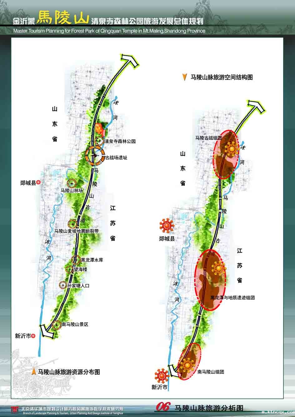 规划地为马陵山古战场的北部的一处山谷。规划紧紧抓住规划地与马陵古战场的关系,确定作为马陵古战场景区的服务基地的基本定位,同时挖掘了其历史上乾隆下江南路过此地时,御笔写下“第一江山”的典故,突出“马陵古战”和“第一江山”两大核心主题,将清泉寺森林公园与马陵古战遗址进行捆绑开发,共同形成国际知名、国内著名的“马陵之战”及兵学文化展示和体验旅游地