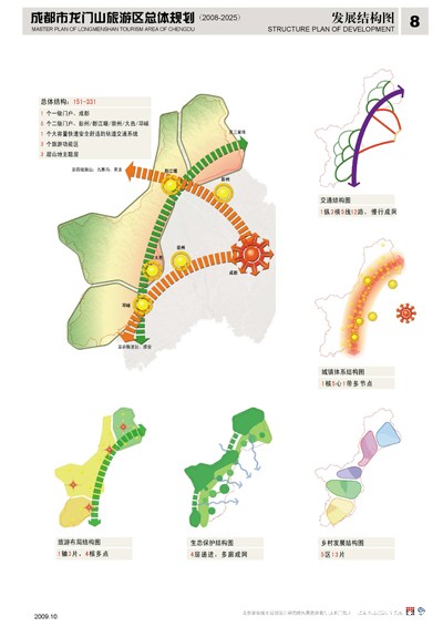 总规制订了龙门山旅游区的总体发展目标,并划分禁建区、限建区、建设区三大旅游功能区,对每一类用地设定对应的管理政策。此外,对龙门山旅游区的城镇、乡村和景区三大类别进行分类调控。