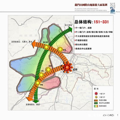 策划对龙门山的综合优势、综合机遇、自身价值以及发展阶段进行客观评价的基础上,紧扣龙门山地区发展的系列牛鼻子问题,明确提出要高起点、高水平、高标准建设中国领先、世界一流、多元复合、宜游宜居的蜀山国际山地旅游目的地。在战略体系、品牌形象、产品体系、主体功能区规划、管理体制六大方面均有创新。