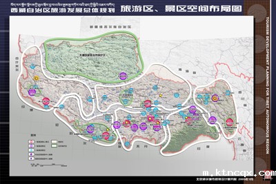 规划要点——规划采取“一中心、二主轴、三部、六区、四口岸、五接点、八通道、十机场”的空间布局模式,规划6大旅游区,16个一级旅游景区和37个二级旅游景区。 提出了西藏自治区“世界屋脊,圣地西藏”的旅游主题形象定位,针对国内市场提出“西藏圣地游”的旅游宣传口号;针对国际市场,提出“攀登地球第三极(Climbing the earth’s 3rd polar)”、“漫游地球之巅(Wandering on the top of earth)”等宣传口号。积极发展入境旅游,大力开发国内旅游,稳步发展区内旅游与边境旅游,适度发展出境旅游,入境旅游、国内旅游、区内旅游。