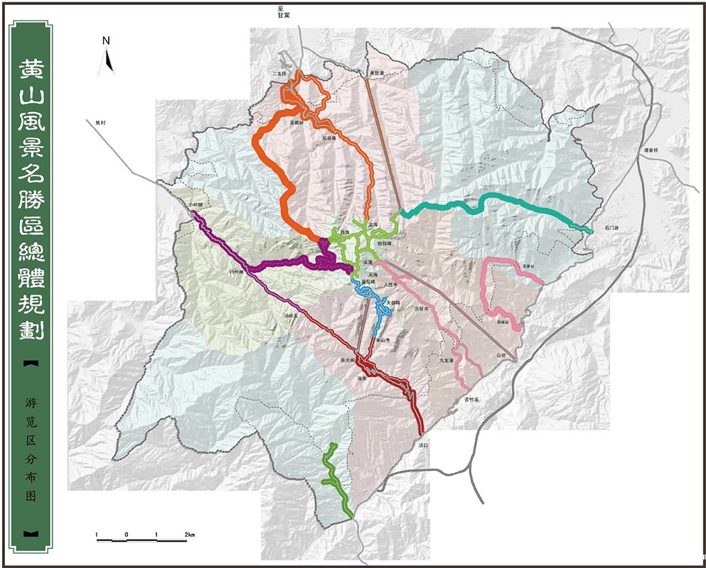 本次规划针对黄山风景名胜区自身特点,以及传统风景名胜区规划技术方法存在的问题,进行了多方面的规划内容和方法的探索和尝试,包括:目标体系、分区管理、游客体验管理、时空分布模型、高峰日指定旅游产品与销售、检测体系以及社区研究等。