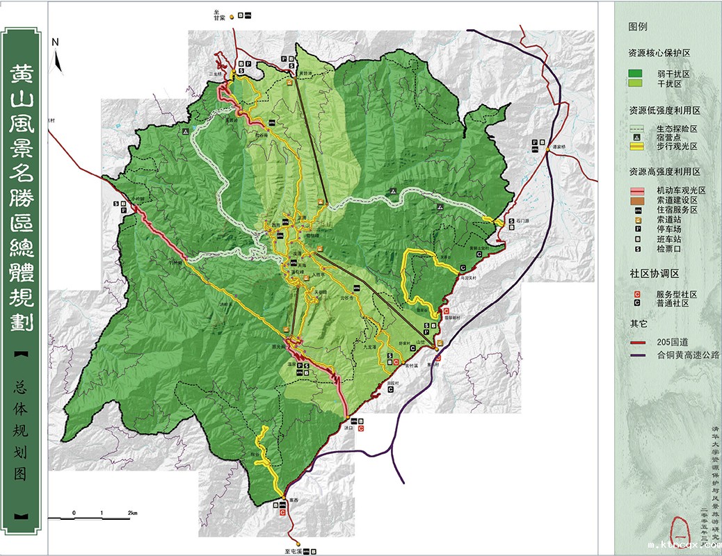 2分区管理:通过分区管理,在空间上明确界定各类分区的用地范围,便于分类、分片管理和规划的分期实施,增强规划可操作性。按照资源特征和保护利用程度的不同,将分区分为资源核心保护区、资源低强度利用区、资源高强度利用区、社区协调区共四大类。分别执行分区人类活动管理政策、分区设施建设管理政策、分区土地利用管理政策。同时,不同的分区实施不同的自然监测指标和社会监测指标。