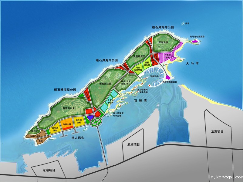 专享岛链——在养马岛前海建设多个人工岛,取意“百骏图”的独特空间形式,形成一系列高端度假的私享空间。以“租个海岛去度假”为旅游宣传主题,形成为养马岛的第三个主题集群。