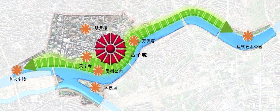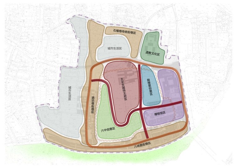 通过地脉和文脉梳理,在婺州古城丰富多元的文化类型中归纳提炼出“文化名邦、军事重镇、商贸江城、风物古城”四大文化特色,对应文化特色设计四大文化项目群,同时详细规划重点街区的商业业态,将婺州古城文化旅游区打造成为展示金华“江南邹鲁、两浙要冲、三江商埠、古婺乡风”文化特色的文化旅游区、八婺文化历史渊源与文化品格的集中展示地、时尚创意文化体验区以及金华城市名片。