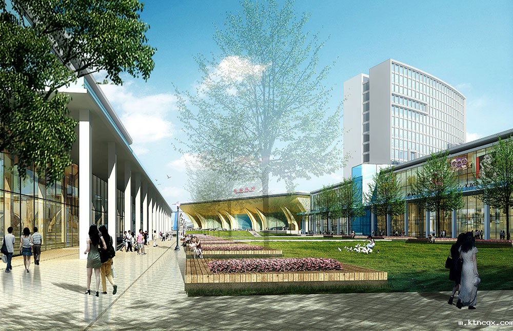 1、视线焦点有效转移:站前道路由直线调整为弧线,弱化了原来与新客站轴线的方向感,引导视线向多个方向发散