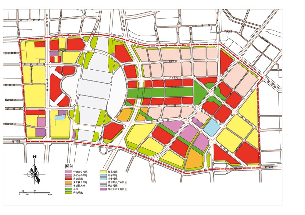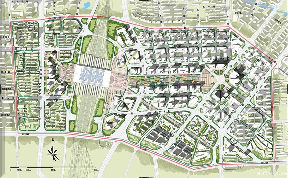 4、理想与现实的远近结合:近期可以满足新客站通车后的城市形象需要;远期为部分敏感建设区域的改造方向预留足够的调整时间,斜向轴线之间预留城市空间主轴线的可能性。