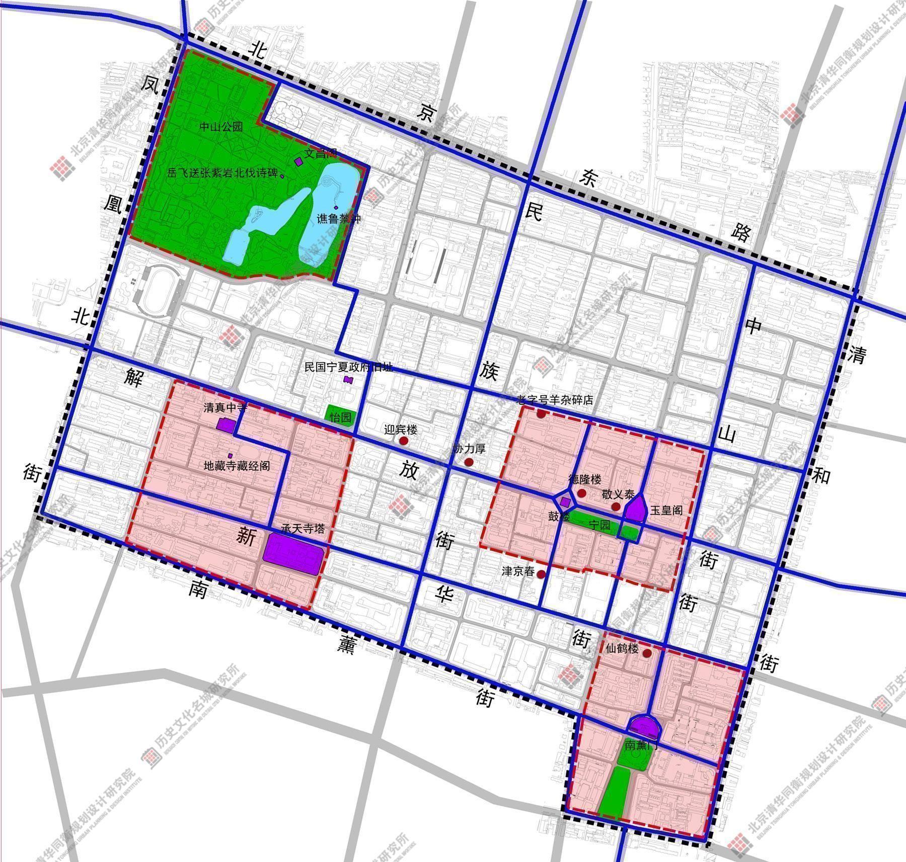 3、历史文化街区层次:划定了五处历史文化特色街区,分别提出了保护措施;