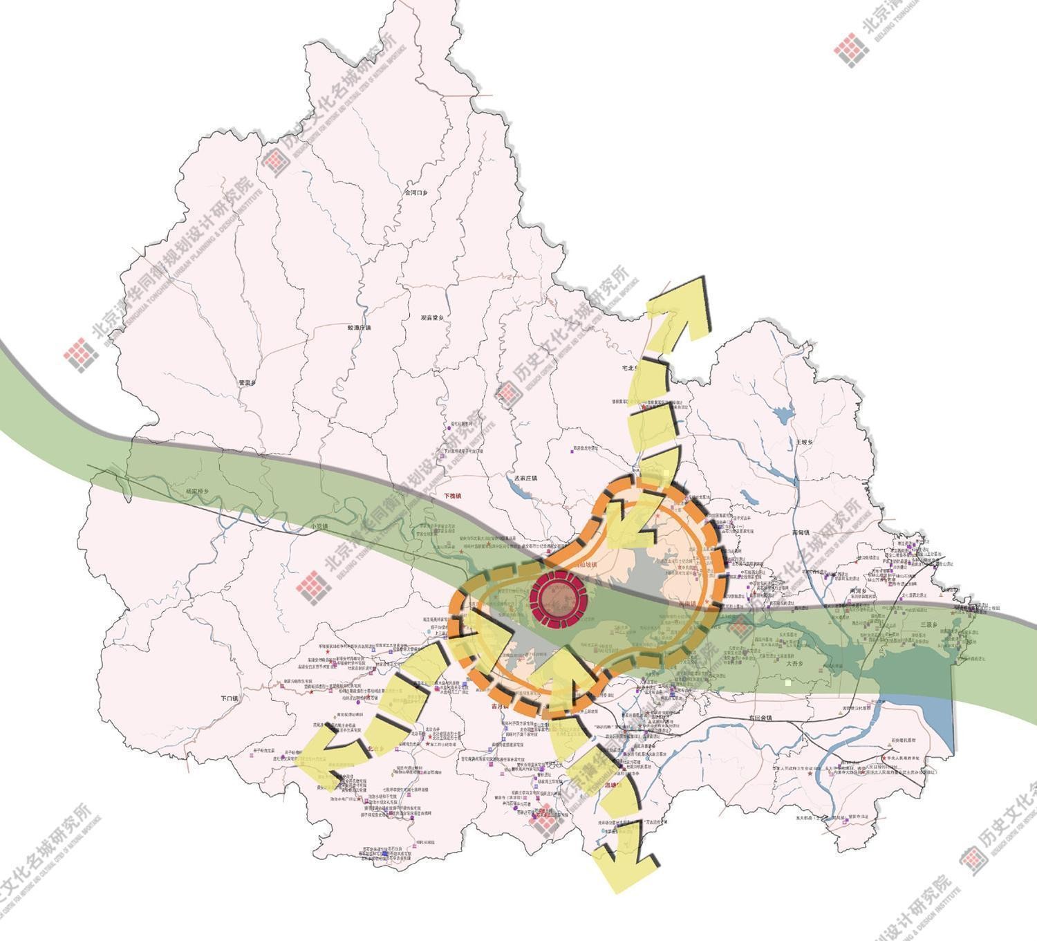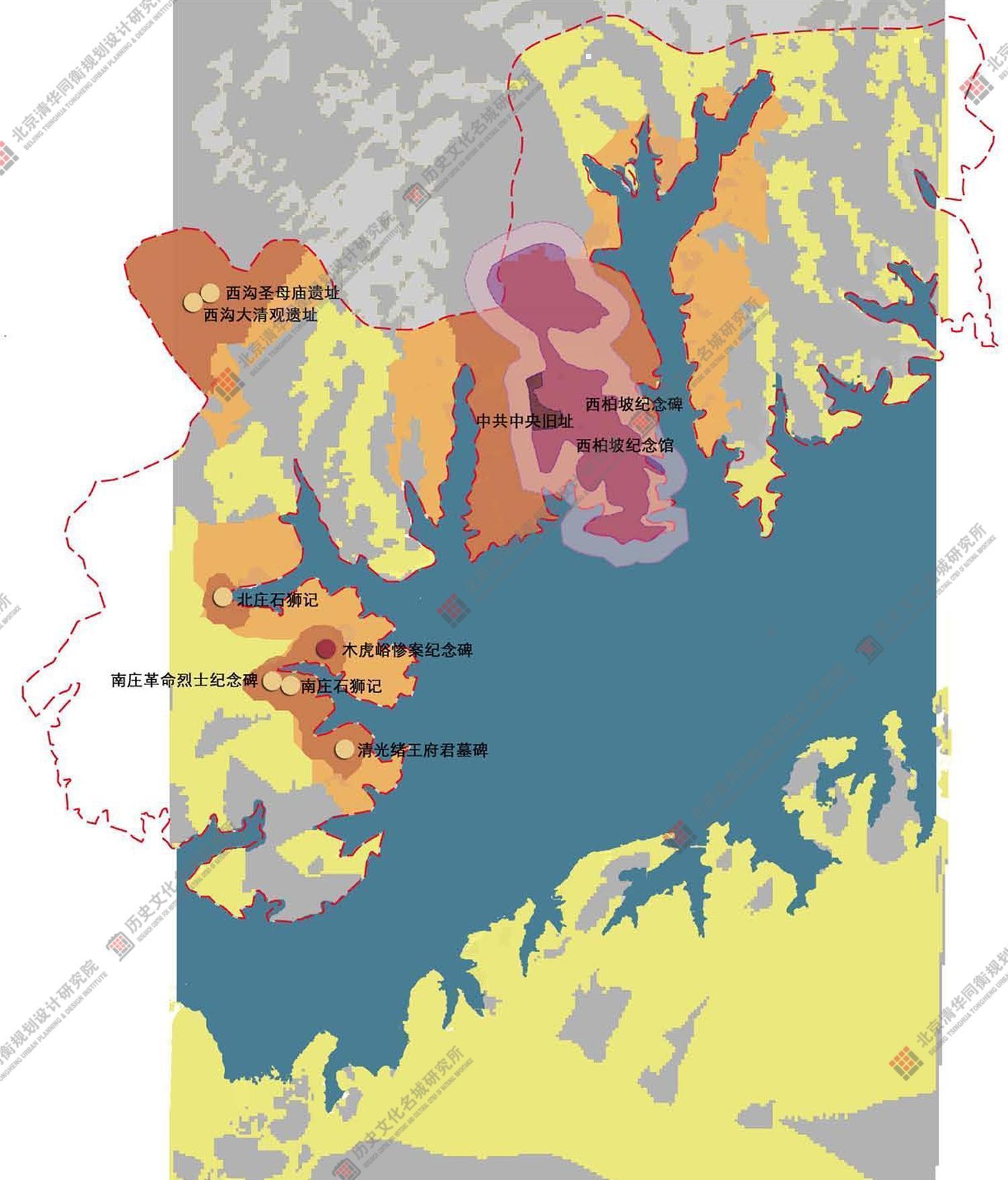 本规划旨在通过以上多点线面的立体保护结构,并针对其中重点区域进行重点保护,将整个西柏坡的历史文化遗产进行整合,致力于构建整体性的“大西柏坡历史文化遗产片区”。