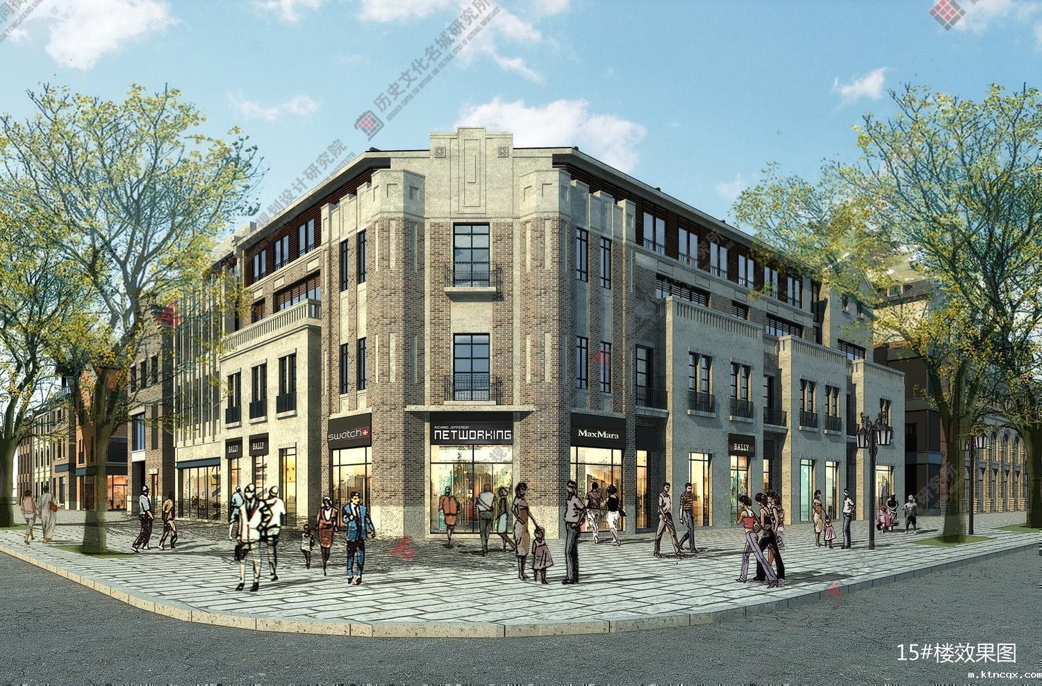 从建筑风貌和立面设计上尊重商埠区作为风貌保护区的真实性与风貌延续性 ,建筑风貌协调而富有变化 。以济南商埠区具有代表性的建筑及商埠区周边具有近代中西合璧建筑特色的建筑为蓝本,提取其建筑特征,作为本区内建筑立面选型的重要依据 。在地块主街两侧采用老材料和老的构建等建筑元素,通过可操作的片段语汇与具有商埠特色的建筑结合,传承商埠历史记忆。在地块的周边建筑选用济南当地老的建筑符号、尺度、比例以及开窗方式等等。并选用新的材料来进行诠释,使得商埠历史与风貌得以延续。
