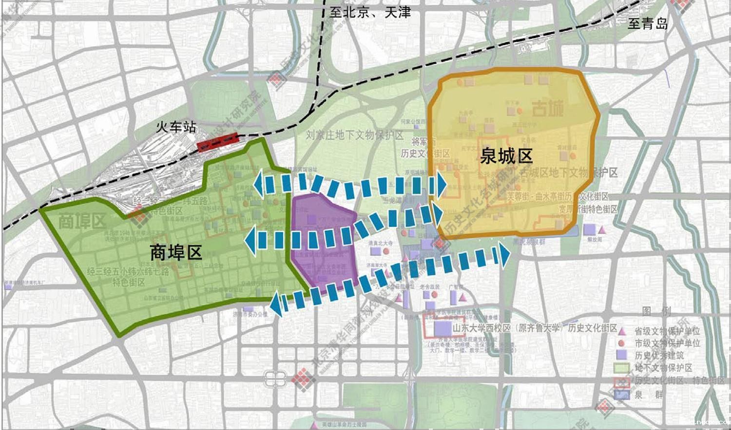 自1904年开埠至上世纪80年代,济南商埠区曾经是济南城繁华的商业中心,中国自开商埠的城市中保护最完整,路网体系最具特色的区域,随着城市发展,老商埠区原有的活力渐渐衰落,但其商埠制度、地租体系对今天的城市规划建设仍然具有极高的借鉴价值,项目的设计目标为“具有历史文化特色的商业店铺集中区、具有良好商业氛围和宜人步行尺度的特色街区、具有代表性的商埠区历史格局”的特色商业步行街区。