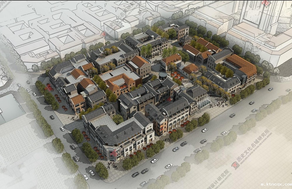 规划严格贯彻应保尽保的原则,严格保护地块内文物、风貌建筑和大树。保护体现商埠区历史的真实遗存。规划将以1处区级登记不可移动文物(张荃生宅)和2处风貌建筑(原胜利旅馆、原皮肤病医院)为核心展开空间布局,围绕中心广场打造为特色商业休闲区。同时,通过商业内街及小型演艺活动广场将商业功能串联。