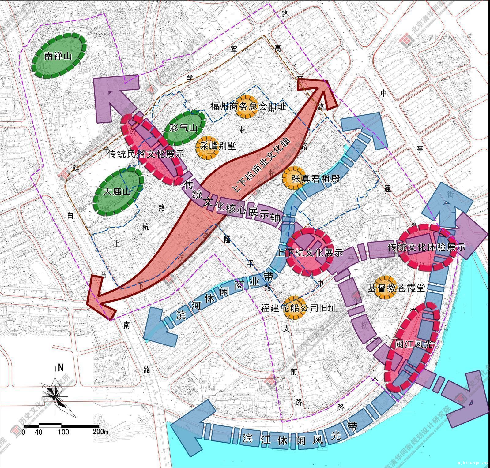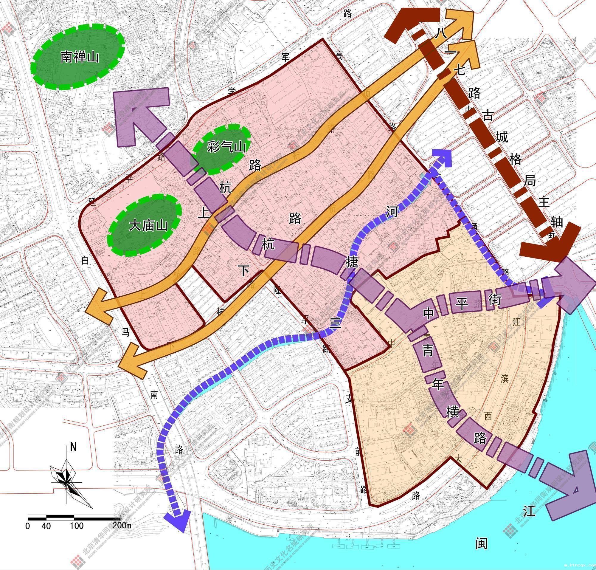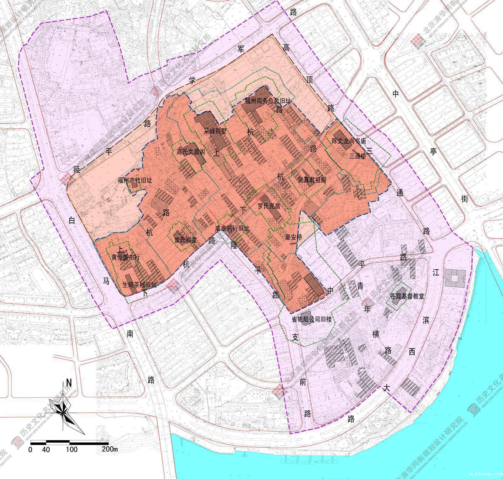 上下杭历史文化街区保护规划统筹历史地段保护规划、文化遗产保护规划相关区划界线及保护要求,基于通过城市历史景观保护方法确定的街区价值,将与上下杭历史文化街区价值紧密关联的苍霞及滨江地区、太平汀洲的南禅山纳入缓冲区进行控制,强化山、江视线、功能、慢行交通上的联系,重构其重要的城市历史景观,以提升上下杭历史文化街区城市历史景观的真实性、完整性的保护。
