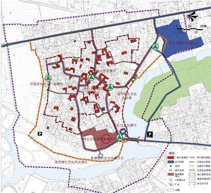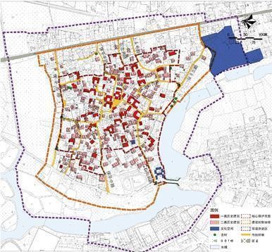 保护规划构建了基于价值评估的保护规划体系,建立了“三个特色片区、五处文化景观节点、‘大’字形历史街巷”的历史文化特色保护骨架,并从山水格局、街巷格局、古河道、历史建筑、历史环境要素、非物质文化遗产要素方面明确保护内容。