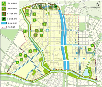 为充分利用资源,固定避难场所同时充当其周围500米范围内人员的紧急避难场所。在此基础上,开发区新增124处紧急避难场所。其中,核心区增加12处,面积约52.21万平方米;河西区增加39处,面积约63.69平方米;路东区增加73处,面积约114.83平方米。这样,规划区范围内,紧急避难场所面积达到341.305万平方米,人均3.9平方米。