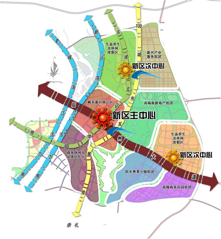 战略定位:中国三苏文教休闲区 ,西部高端养生养老地 ,天府后台服务新高地 ,眉山现代生态型都市新区;