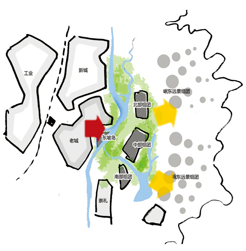 岷东新区应以环境为核心竞争力,实施环境引导规模、设施引导品质、交通引导开发的原则,营造城藏于丘、水绿交织、组团发展、快通勤慢生活的生态型现代都市新区;以东坡文教休闲为特色,打造东坡九园,延续文脉、再造诗书城。