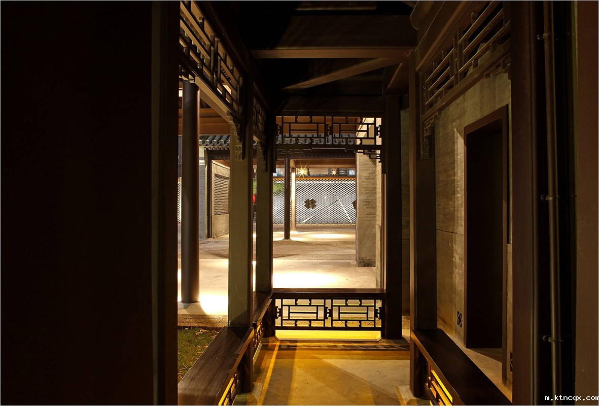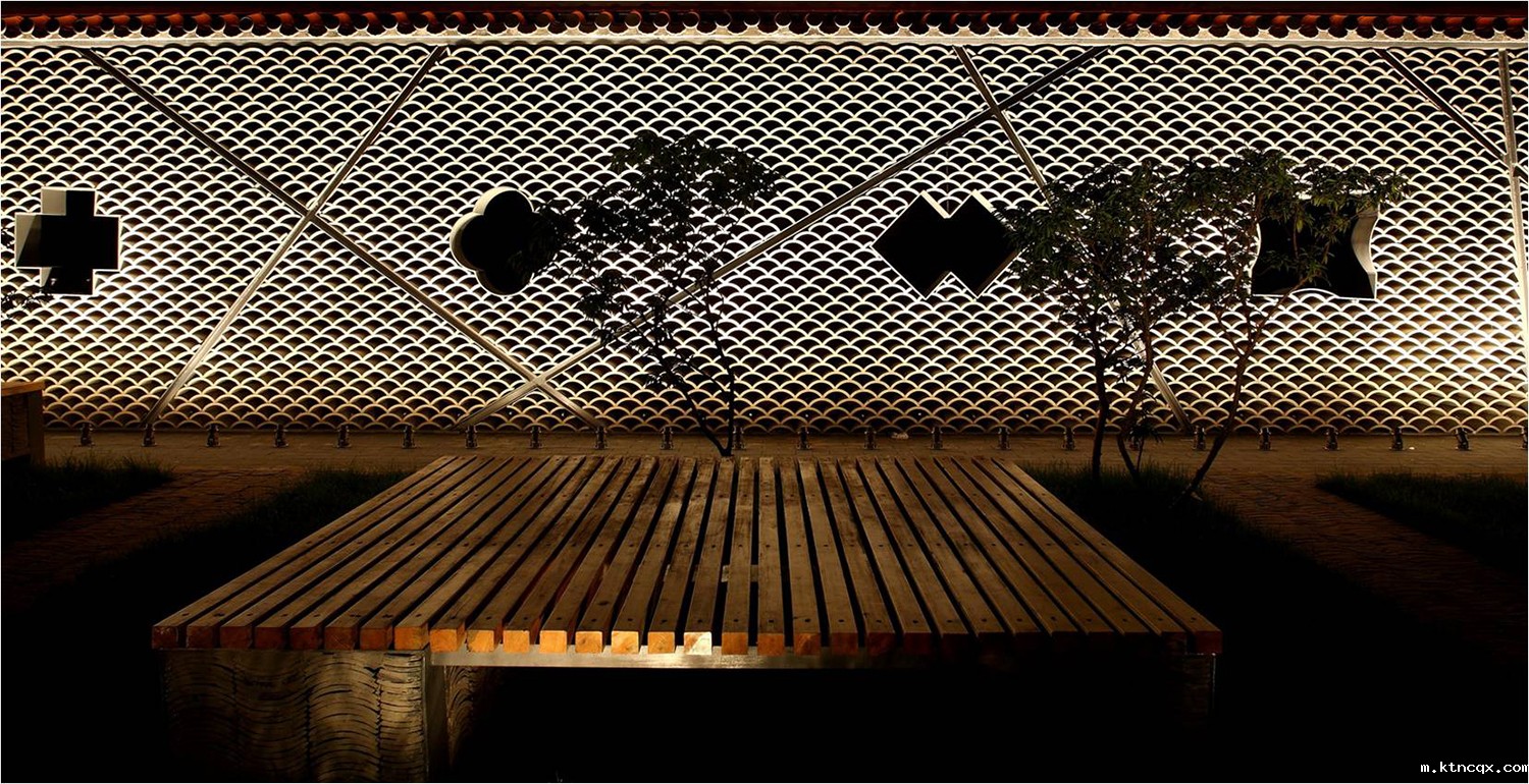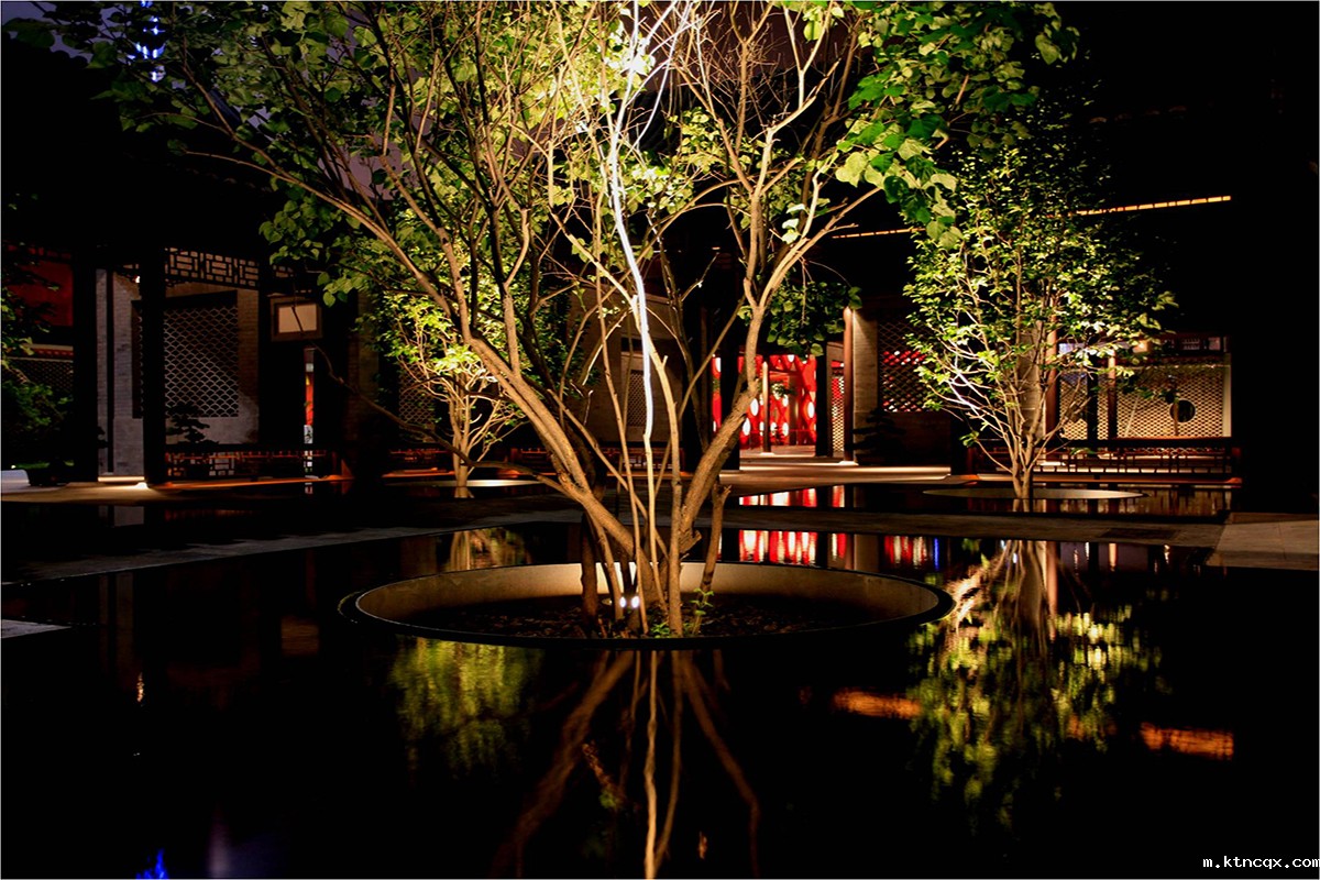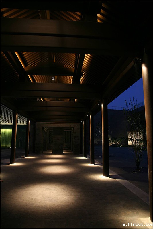 奥运中心区下沉花园二号院夜景照明以视觉感知为设计出发点,强调视觉吸引。照明设计充分利用基础条件,对不同载体采用特殊的针对性的照明方法,力图形成多样化的、层次丰富的视觉意向。从设计手法上来讲,强调入口照明,形成明亮的交通集散区与下沉花园的明暗过渡。院内东西通道檐下设照柱投光灯,外侧通道以垂直面间接照明为主。对于休憩和活动的视觉识别,选择城市家具进行照明,供人停留。院内有选择性的照亮古木与水体形成环境光,屋面下结合构架分层次的设置间接反射和直接投光光源。对于本案中反复出现的镂空瓦墙元素,照明设计充分利用它在视觉上似透未透的特点,从不同角度观看,获得不同的效果,本身亮显后,前景的植物形成生动的剪影,和造型明确的漏窗相映成趣。
