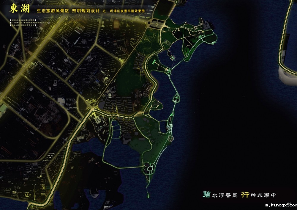 东湖夜景需要诗情画意,需要明暗适宜,但仅是传统照明手法已难以满足今天社会对于东湖的需要;夜间景象的吸引力、游赏活动的丰富性、生态环保理念的贯彻,这些综合特性才能够表征现代东湖景观照明胜于其他开放空间的率先理念。
