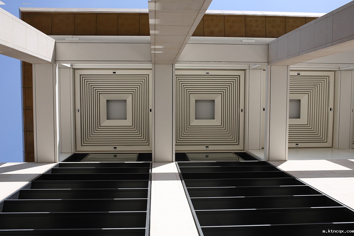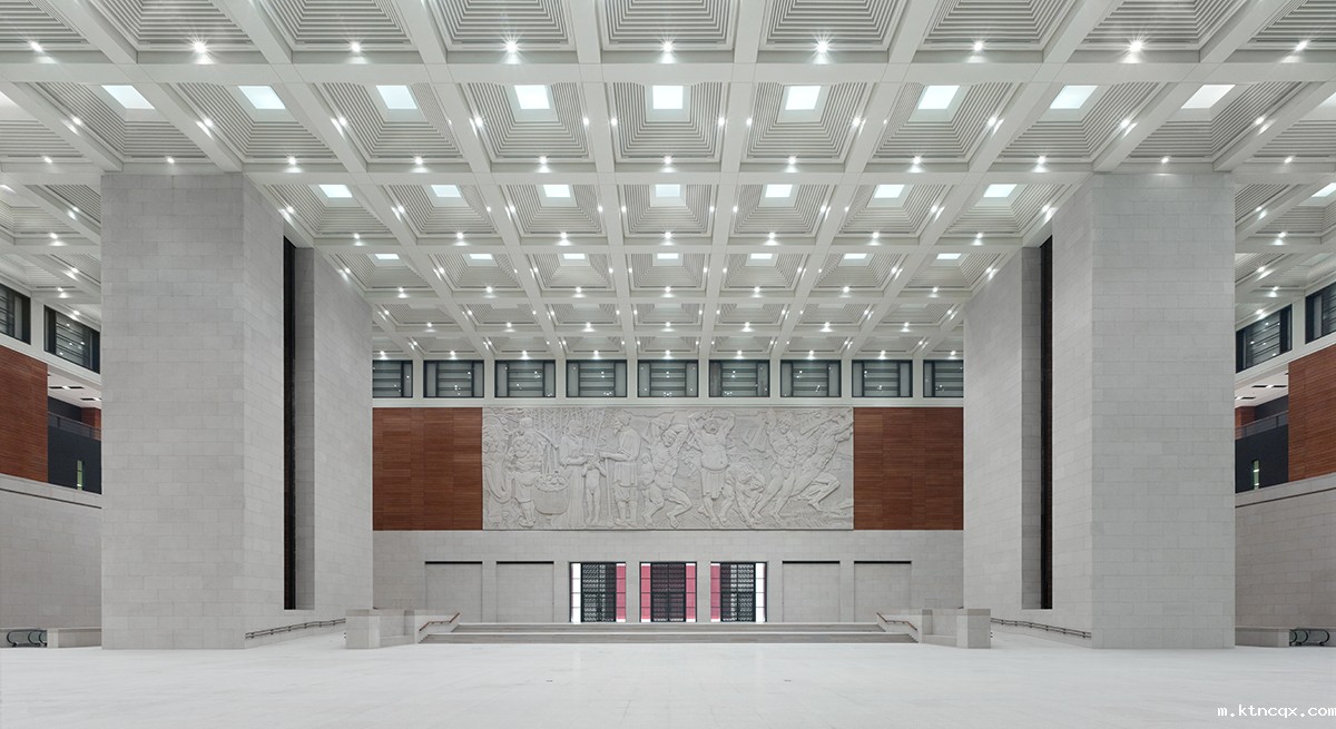 为避免照明使建筑变得过于单一、呆板. 塑造建筑照明层次,构建建筑的光形几何,尤为关键。作为国家博物馆的重要建筑元素,建筑两端转角立柱与蒙古包为重要的照明塑造的几何面,中间连接幕墙面以次等级亮度的泛光形式洗亮,这样分化出整个建筑大的光度层级;新馆与老馆的顶部飞檐上设置的照明,强调建筑纵向光度层级和局部建筑细节的特征描写;各出入口处的内廊照明则是增加建筑光度层次新的元素;西面主入口的徽章照明起到画龙点睛的作用,突出建筑中心元素。