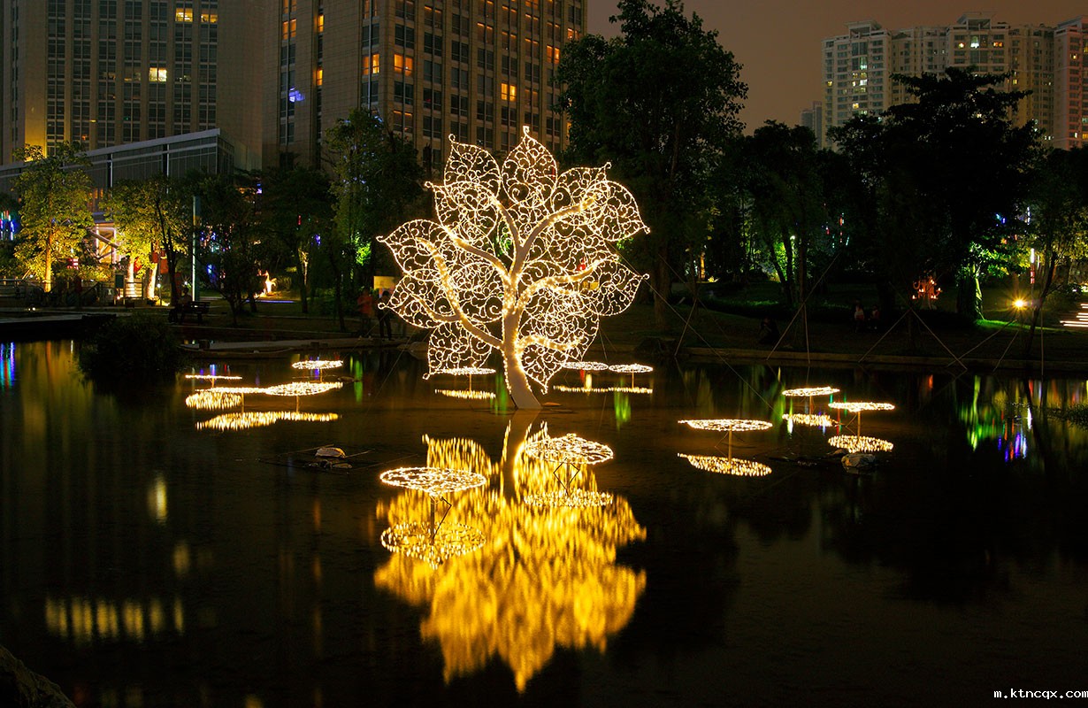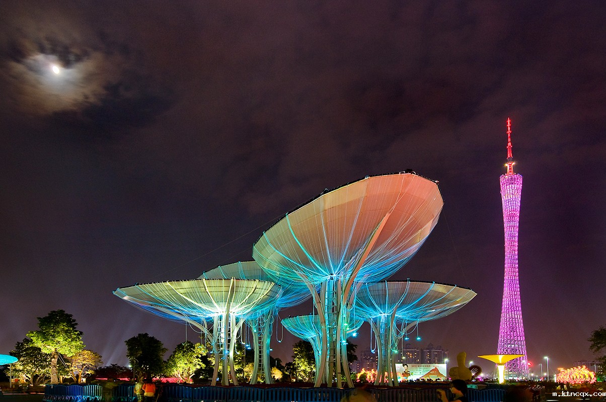 广州国际灯光节:充分利用珠江两岸和新中轴亚运时期建设的完备固定照明设施,通过临时照明设施、临时大型构筑物和灯光的结合,以很小的代价,营造与平日迥异的视觉、行为体验。