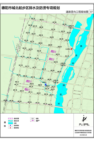 德阳市城北起步区在编制完控制性详细规划的同时,开始编制道路及排水管道施工图。但在部分道路实施的过程中发现,在控制性详细规划的指导下编制的施工图存在诸多问题,因此我院建议编制控制性详细规划层级的排水及防涝实施规划,以有效、科学指导施工图的设计。