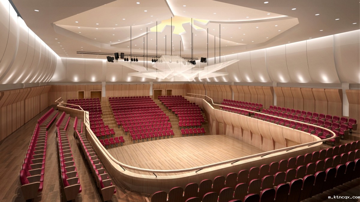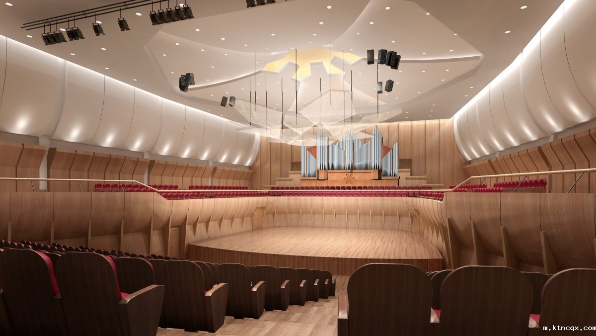 音乐厅平面为标准长方形,长为37.5m,宽为26.1m。平面面积980㎡。