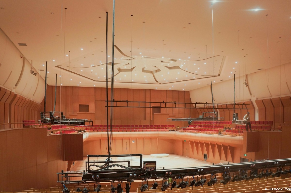舞台声反射板 在音乐演出过程中,为了充分利用舞台产生的声能,在舞台上方设置声反射板,一方面为观众席提供足够的前次反射声,另一立面也可以促进演奏者之间的相互听闻,提高音乐的亲切感。