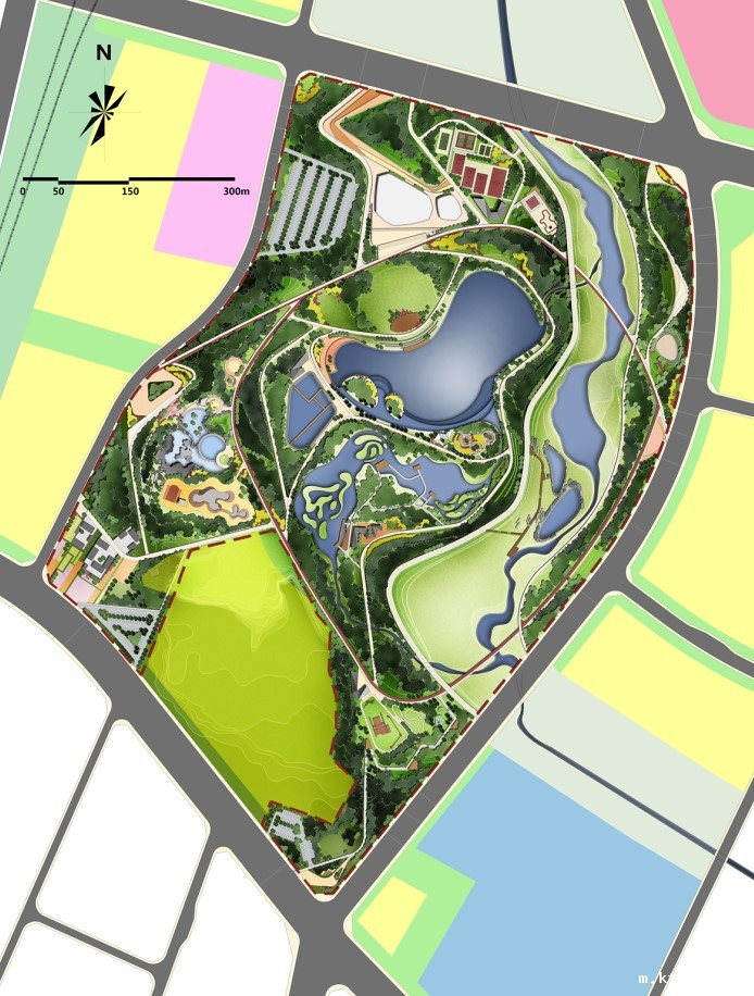结合场地区位,集中服务新、旧城区市民的康体健身公园