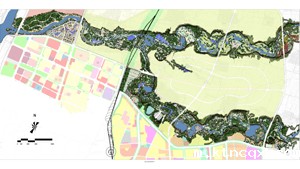 涝洰河城区段生态治理工程景观规划,为涝河及洰河两岸500-1000米不等宽度范围内,西至汾河,东至108国道,总面积约为7.5平方公里。总投资6.3亿。结合周边用地及策划要求,将涝洰河分段分主题打造。临近汾河段,借助奥特莱斯的商业契机,打造城市景观带,成为临汾市老百姓吃喝玩乐的集中地。涝河段本身自然条件较好,对现状的鱼塘、水系进行梳理,形成质朴的自然景观带。洰河段作为民生工程,为老百姓的日常生活提供体育、游玩、观赏及参与等各种场所。