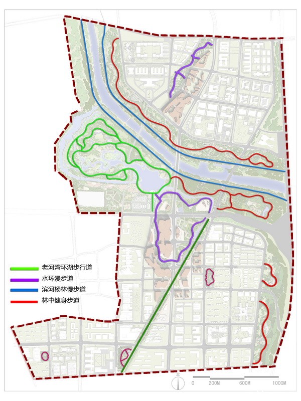 结合高层建筑的地上空间和地铁、公交枢纽、商场的地下空间,形成空中步行连廊与地下通道、下沉花园等多层次的慢行连接系统,将核心区组织成一个纵横交错的多维度的慢行网络。同时利用绿地植被优势,形成具有景观特色的慢行体验空间。