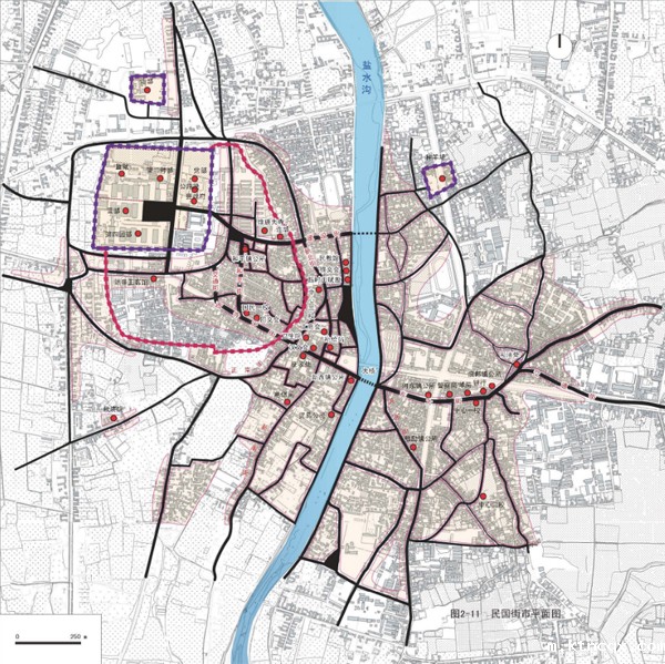 针对历史文化名城所具有的“城市属性”和“文化遗产属性”,确立了对“城市”和“区域”,“物质空间遗存”和“文化传承活力”并重的整体保护思路。建立了包含城市与相关历史遗产、周边环境格局、非物质文化遗产等有形的物质环境和无形的社会文化环境的整体保护框架,和分类、分层次的保护要求。