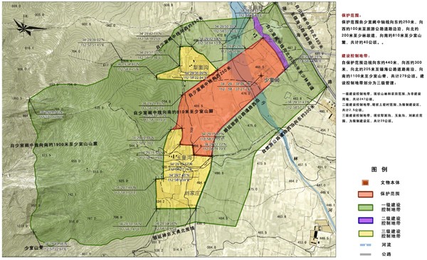 规划编制过程中,综合运用多学科、多技术;结合GPS、RS和GIS技术,对少室阙历史地理环境进行分析,揭示少室阙、少室山庙与少室山、少溪河之间的历史联系,增强保护的整体性和系统性。保护区划边界运用GPS技术进行精确定位和放样。对文物本体和周边环境安全进行防灾分析和科学检测——对少室阙南部少溪河防洪进行了勘查、计算和初步设计,对少室阙东南侧旅游公路车流和阙体周边人流活动进行了振动测试分析,增强了规划措施的科学性、合理性和可实施性,为国家节省资金近千万元。