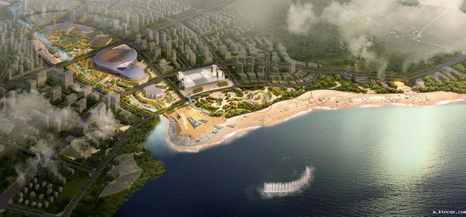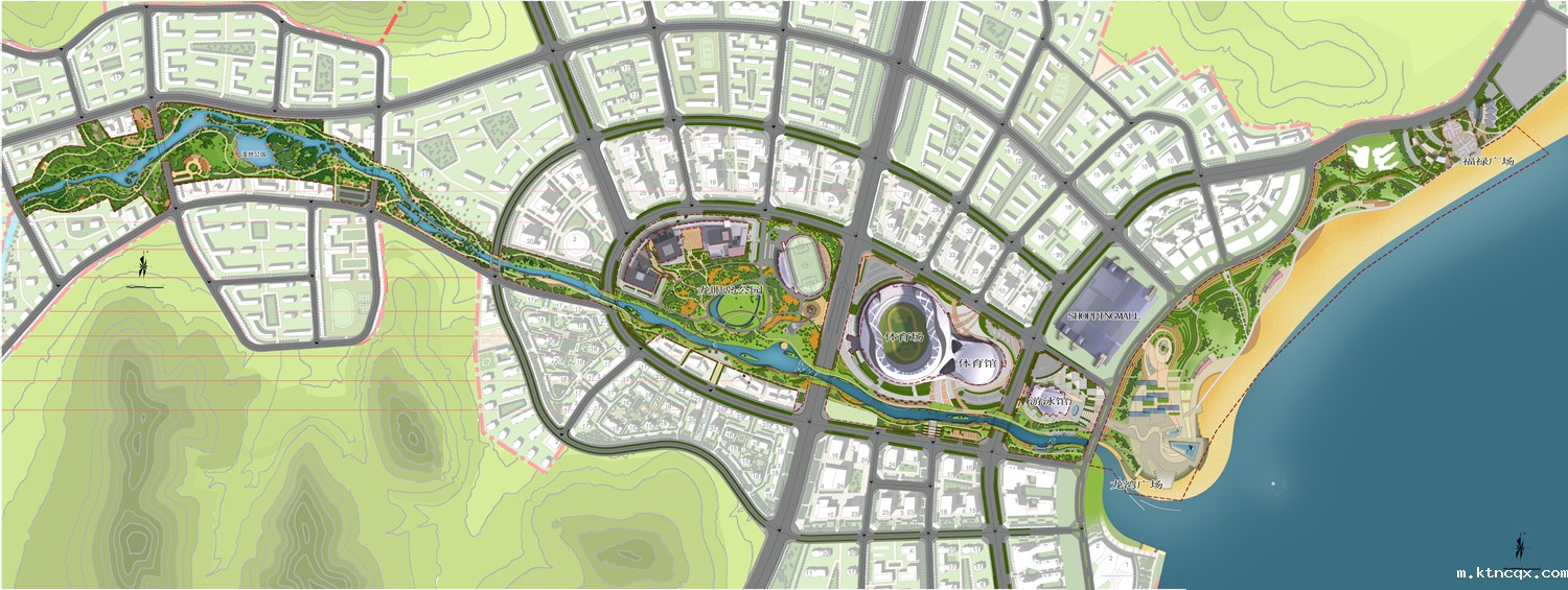 葫芦岛龙湾中央商务区规划总用地面积763公顷,全区域地形背倚三面群山、面朝龙湾渤海,自然形势优渥,基本是一块尚未开发的处女地。本项目规划设计的主要对象是长约7公里、流域面积44公顷的月亮河流域以及约14公顷的滨海商业休闲景观带。