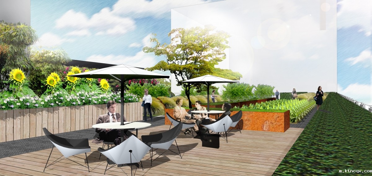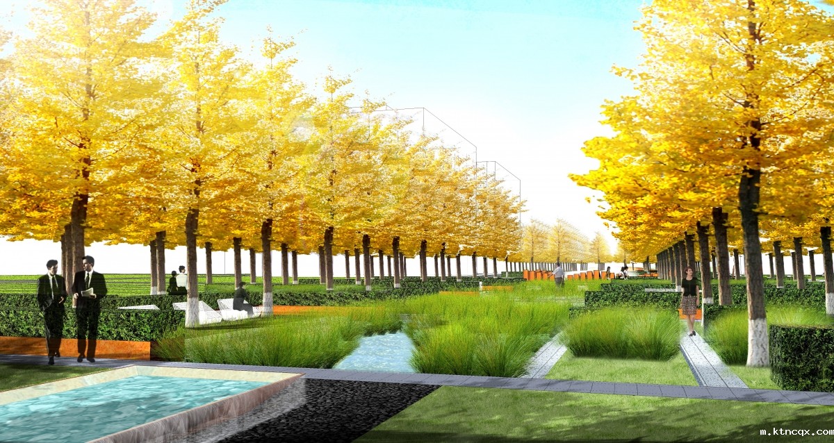 技术上,设计场地的标高为全园最低,我们将组织场地的排水,并最终汇入到中轴景观带,通过雨水花园将这些雨水收集,经过净化等处理存积到集水池中,并用于园区的景观用水及灌溉用水。