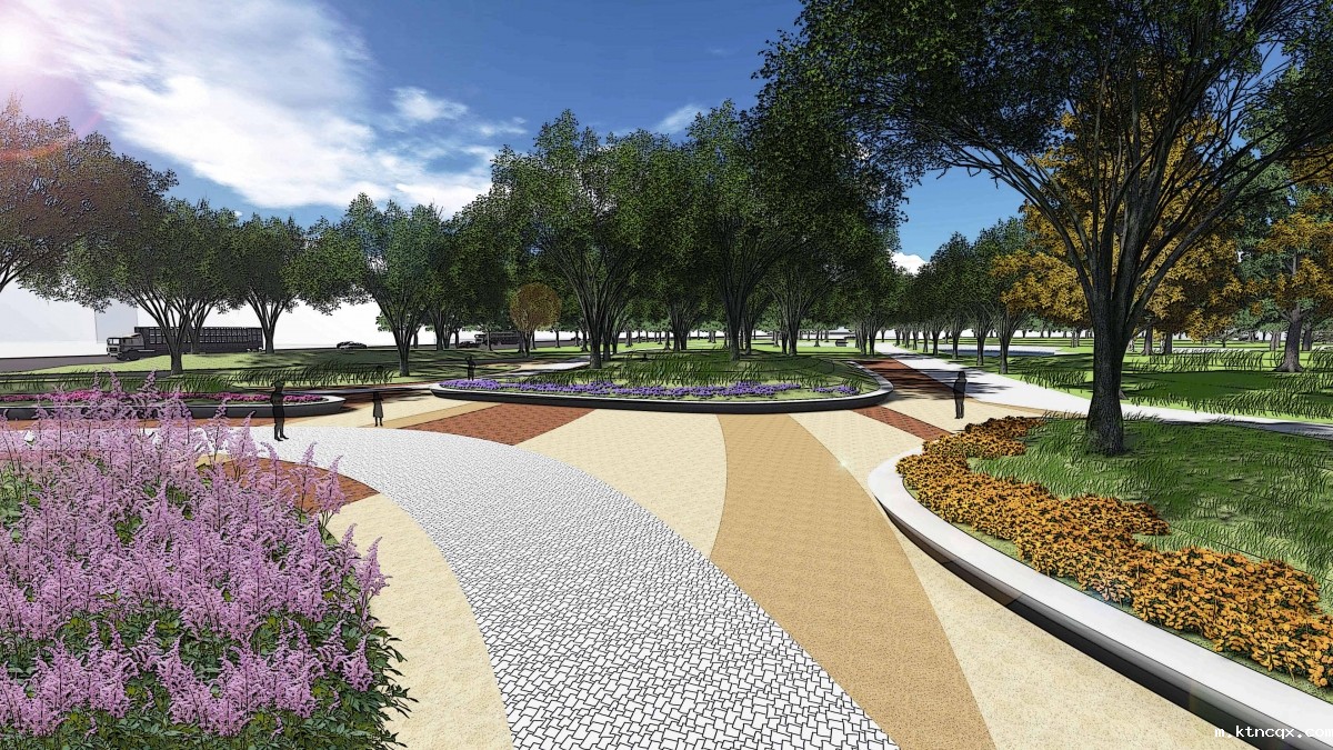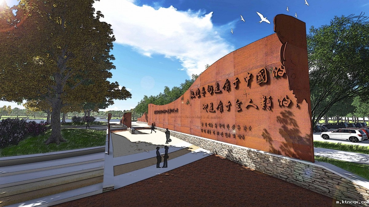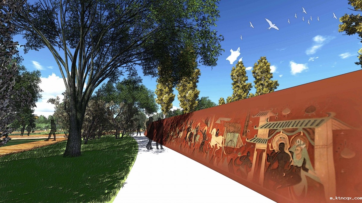公园名称为飞天公园,以展现飞天为突出特色的敦煌艺术文化为公园主题。公园设计通过总体景观格局、节点景观设计、雕塑、铺装、色彩、小品、种植等多方面体现飞天艺术特色。