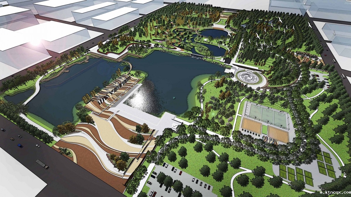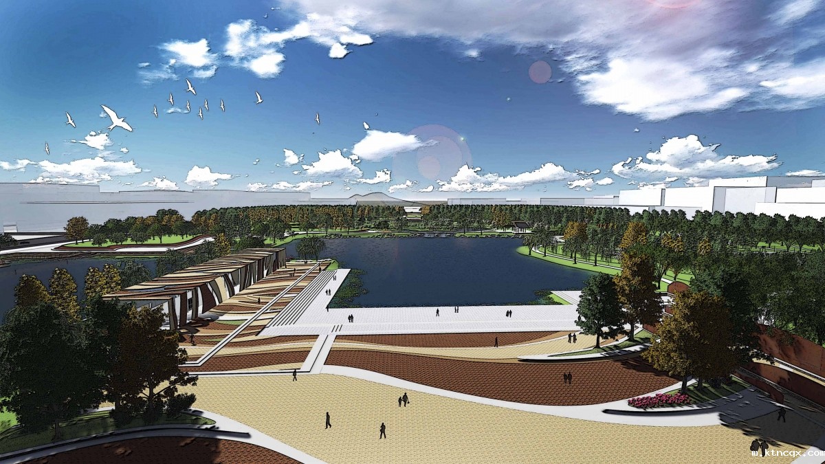 本案位于敦煌市中心以南,党河以东1000m左右,文化产业园区北侧。飞天公园规划设计面积28.07公顷。飞天公园水系属于《敦煌城市水系景观系统规划》中新增景观水系的重要节点,同时也是“三溪五湖百塘”园林景观工程之一,面积5.9公顷。飞天公园水系设计充分利用旧兰亭砖厂场址遗留的深坑,并结合飞天形象的曲线对驳岸形态进行适当优化,形成蜿蜒曲折,有收有放的自然水系景观。