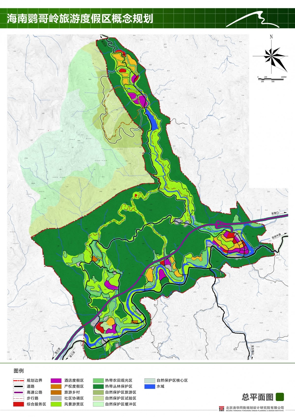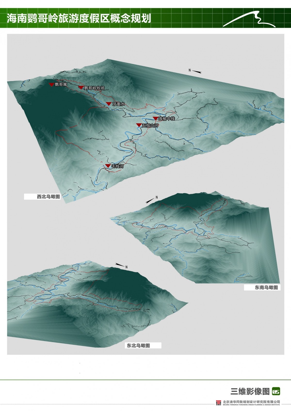 规划区位于海南省琼中县,规划范围南至红一二村,东至什运村,西北至鹦哥岭自然保护区边界,总规划面积为43平方公里。规划从首先对海南旅游市场进行了深入分析,提出海南热带滨海度假旅游日臻成熟,海南旅游亟待向纵深,即山海一体的国际旅游岛深度发展。此外规划还深入分析了鹦哥岭的资源基地,提出鹦哥岭的资源基底好但在其资源在海南来说,相对较为普遍。规划从市场切入、产品突破、区位尴尬、用地问题等方面深入分析了鹦哥岭旅游发展面临的问题与挑战,提出琼宇乐园●海南之巅的核心思路,构建流云飞瀑/鸟语花香、黎锦龙被/琼崖奇缘、琼楼玉宇/饕餮舌尖和莺歌燕舞/虎跃龙蟠四大板块。