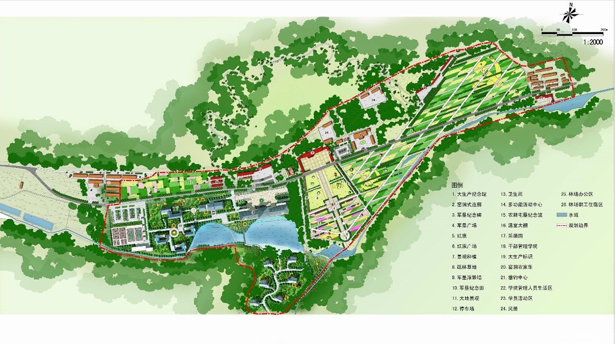 军民大生产屯垦文化景区被誉为陇东的“南泥湾”,也是红色歌曲《军民大生产》的创作地。本规划在充分挖掘当地历史文化资源的基础上,结合基地自然和人文特征,梳理军民大生产历史,深化主题性红色旅游。通过对纪念馆、广场的改建以及大地景观的塑造,展示主题纪念内容。