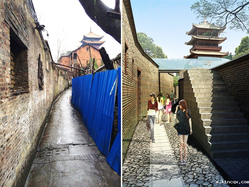 项目组经过一年多的工作,形成御窑厂为主导的明清窑作展示核心片区,包括御窑厂官窑文化的展示,刘家窑、黄老大窑官搭民烧文化的展示等。围绕这个主题,规划对每一栋现状建筑对症下药,或改善、或提升、或新植入不同功能,从活力方面改善地段特征。同时,对历史建筑和传统风貌建筑采取“认认真真维修”的态度,以最小干预为原则认真修复;对已经坍塌的部分,或现有的现代建筑,采取“坦坦荡荡建设”的态度,在文物保护法和历史文化名城名镇名村保护条例的框架下活化整个街区。这种小规模、渐进式的方式,也使街区实施完成的效果得到了广泛的认同。
