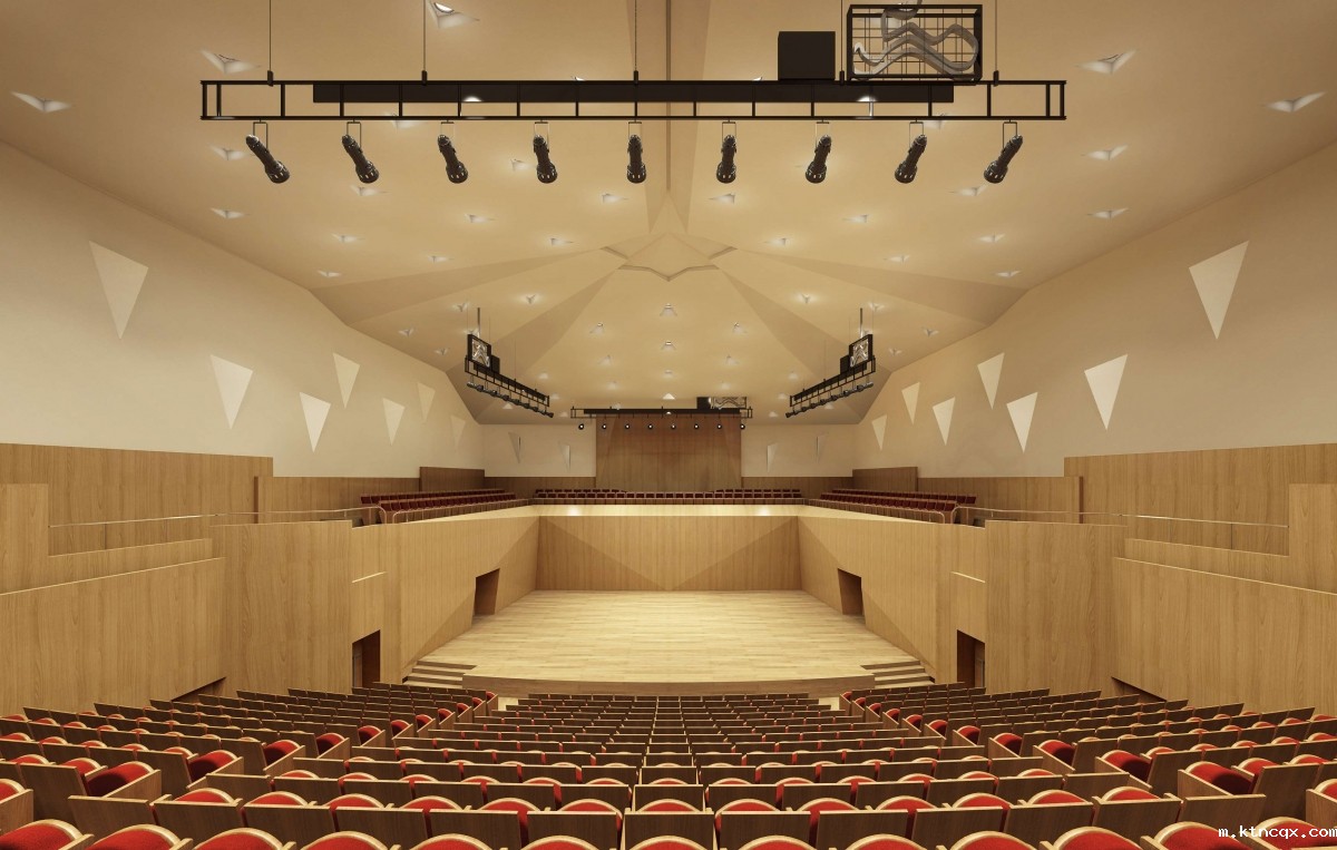 (2)舞台:平面总计约219平方米,深14.1米,宽17米,呈喇叭形。根据舞台交响乐的使用功能以及交响乐队的演出规模,对舞台进行合理设计。