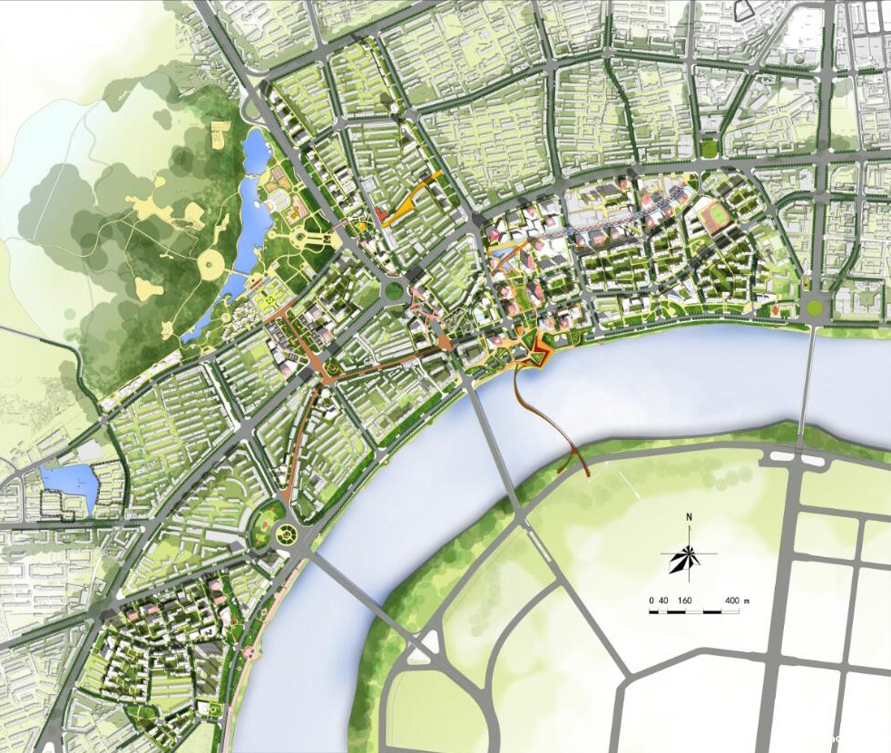 3、老城活力的全面激活:综合提出了符合吉林市现状情况的、并适应城市发展水平和气候特征的交通活化、街区活化、开放空间活化的系统解决策略。