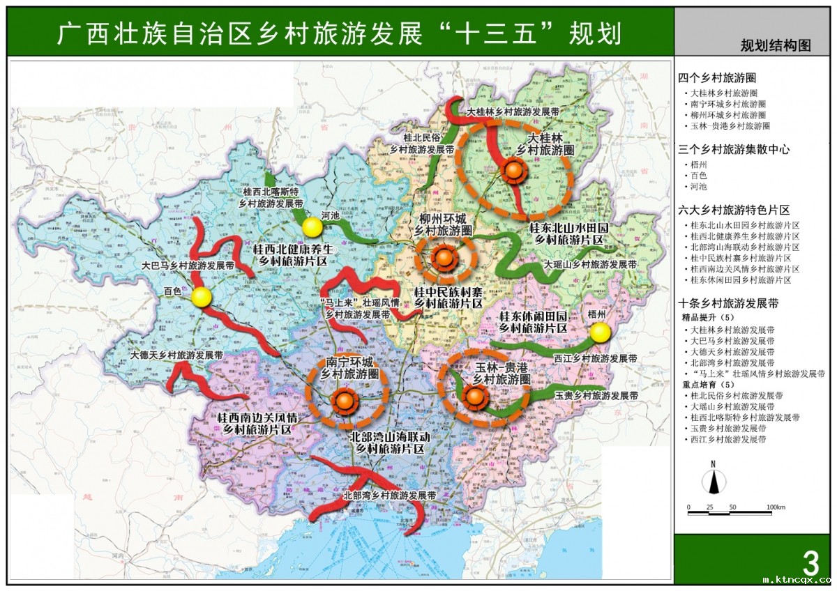 规划由主文本、规划纲要、重点旅游项目表和九个专项规划构成,形成系统化、系列化、环环相扣的成果体系。规划紧紧围绕“一个目标、一个主题、一条主线”的思路展开,即:广西建成旅游强区,成为全国一流、世界知名的区域性国际旅游目的地和集散地,国家健康养生旅游省,国家全域旅游示范区和国家旅游扶贫示范区;围绕党和政府的中心工作,将发展观念切实转变到以人为本上来,将发展模式切实转变到提高质量和效益上来,将发展途径切实转变到统筹协调上来,将发展重心切实转变到改革创新上来,将发展落脚点切实转变到促进“富民强桂”上来。