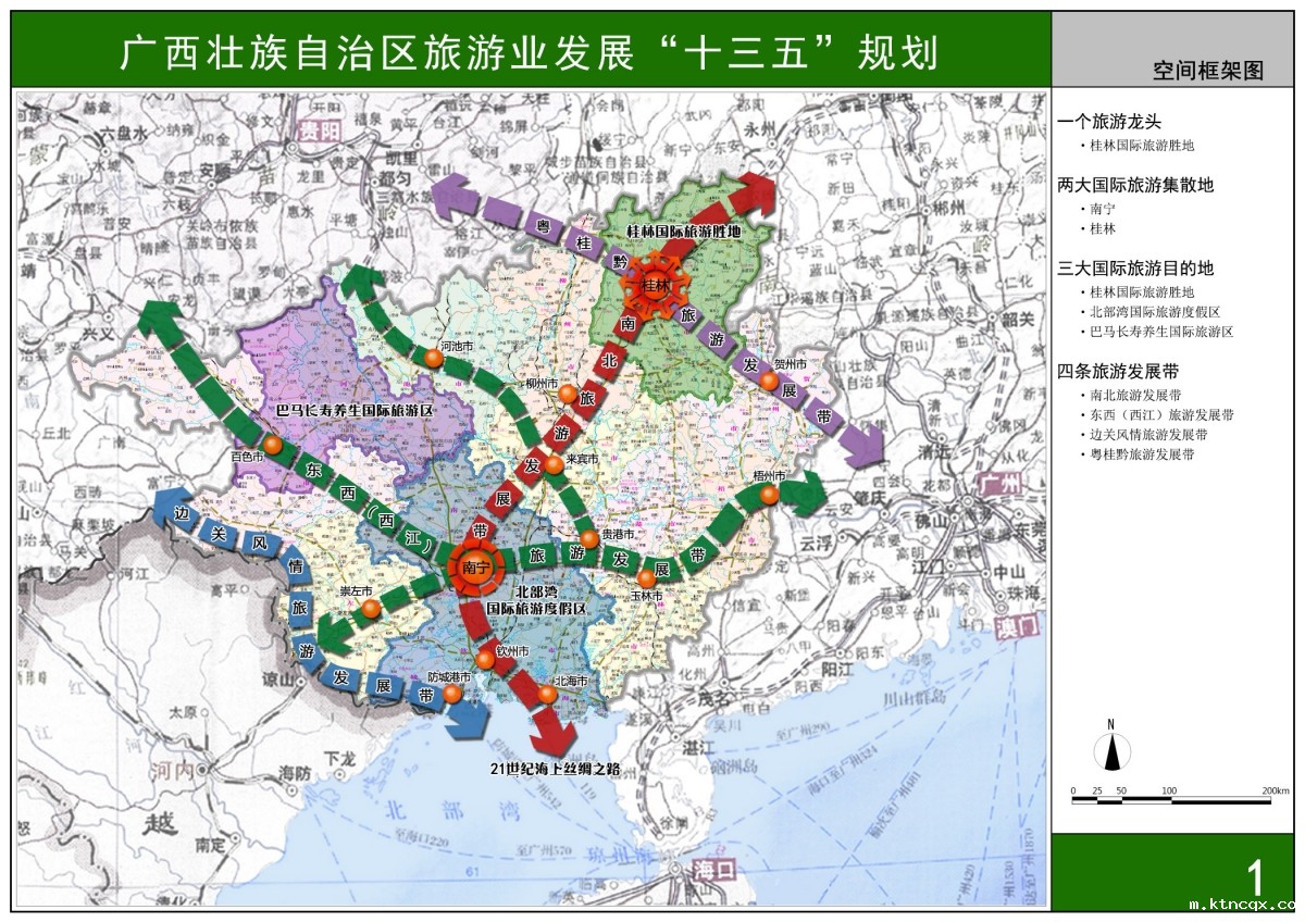 规划提出构建“一个旅游龙头、两大国际旅游集散地、三大国际旅游目的地、四条旅游发展带、一批特色旅游名县和旅游产业集聚区”的发展框架。