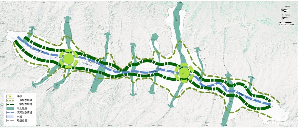 规划以建设“绿色河谷”为目标,通过“绿色河流”、“绿色屏障”、“绿色城区”修复海东生态体系,创造更多生态价值,改进城市空间品质,促进生态经济发展。本规划同时作为总体规划重要的支撑,将从区域层面划定生态功能区,对水土流失等区域生态问题进行深入研究并提出具体解决方案。并对中心城区的滨河空间、沿山空间等重要生态空间提出发展方针、空间设想及生态空间管制要求,构建山-水-城-人一体的生态安全网络。