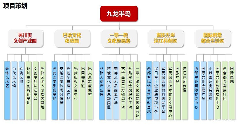 1、产业定位:文贸引擎、文旅延展、文创为芯,突出“文化”+,强化文化产业联动、集聚、融合效应,营造渝派文化产业生态圈。