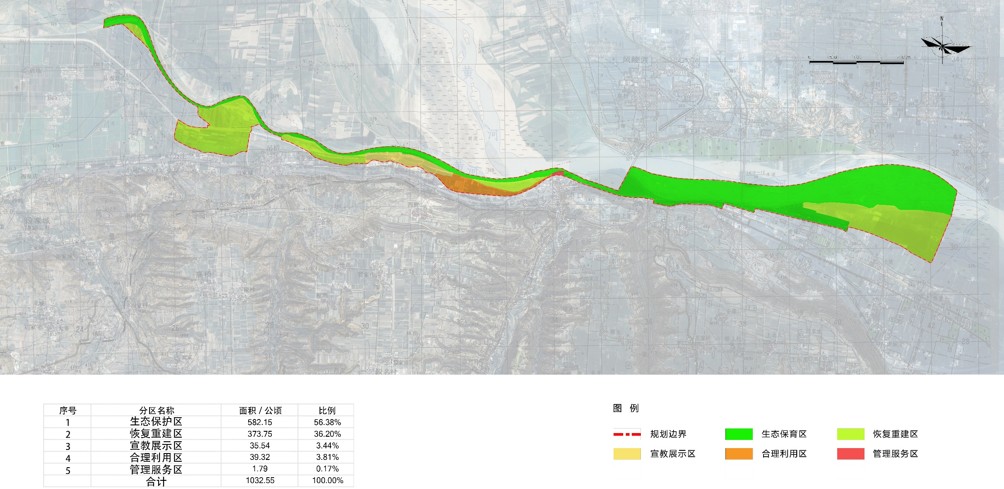 总体规划建立在规划团队多次翔实的场地踏勘以及专业团队为期一周的场地动植物影像调查的基础上。规划以保护为前提,以生态学原理为基础,严格遵循国家及地方关于湿地保护与利用的法律法规及技术章程。根据湿地公园资源特征和分布等情况将其划分为生态保育区、恢复重建区、宣教展示区、合理利用区和管理服务区。实施分区管理,分别设立管理目标,制定技术措施。对湿地公园进行科学的保护和恢复,全面开展湿地科研监测和科普宣教活动,适度开展湿地生态旅游,维护区域生态平衡,促进当地社会经济可持续发展。